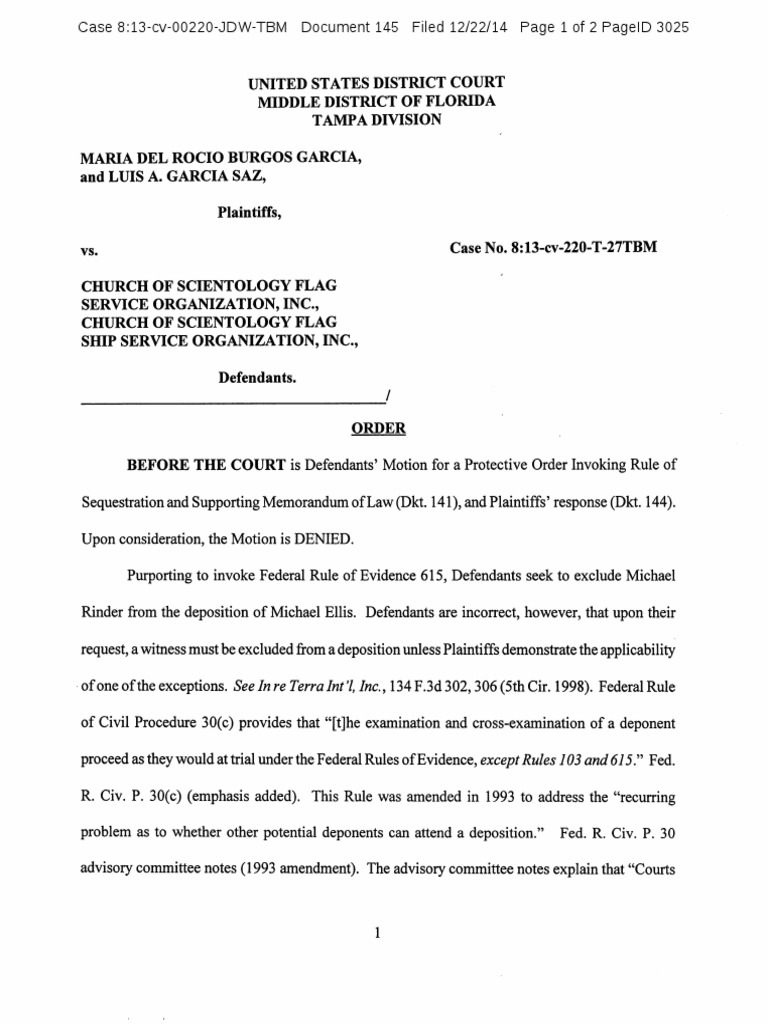 Garcia v. Scientology: Order Denying Protective Order