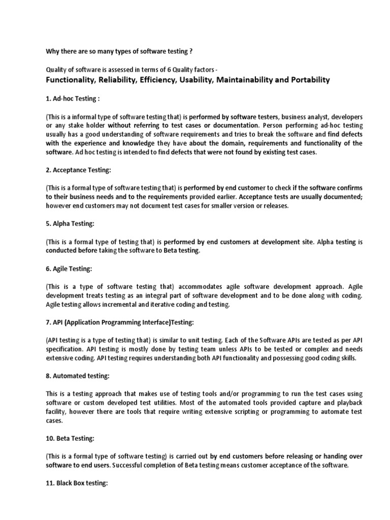 hardware and network) against the requirements for which it was built. Different types of tests (GUI testing,