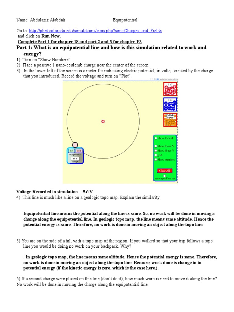 Part 1: What is an equipotential line and how is this simulation related to work and