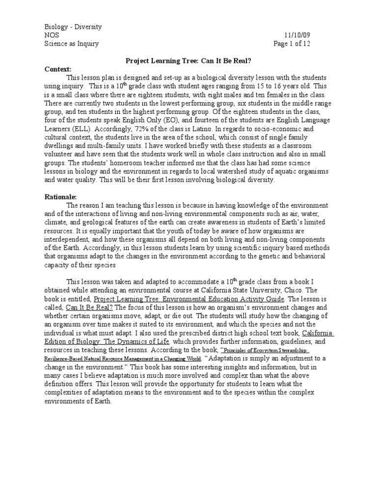Project Learning Tree: Can It Be Real?