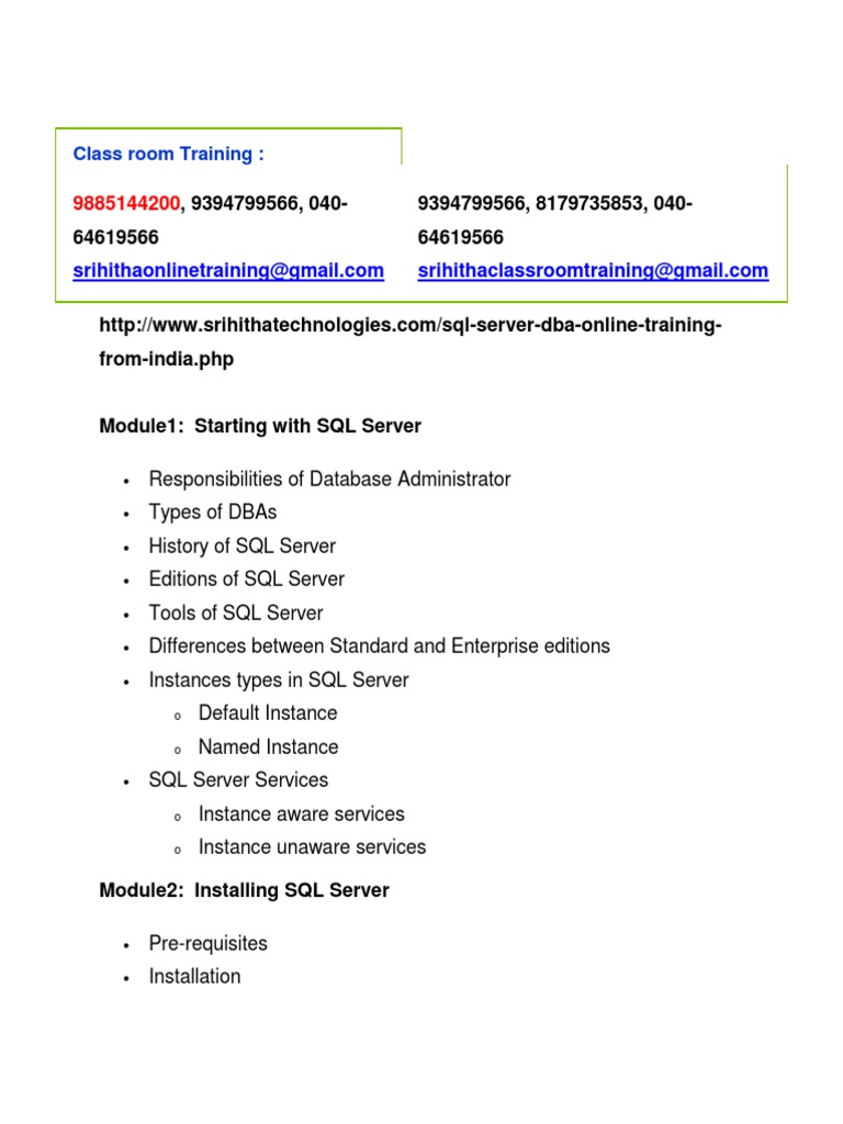 http://www.srihithatechnologies.com/sql-server-dba-online-trainingfrom-india.php