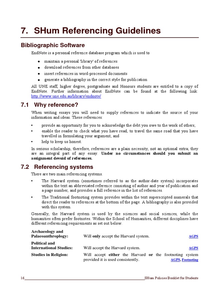 The following sections provide guidelines on the Harvard System (section 7.3) and the