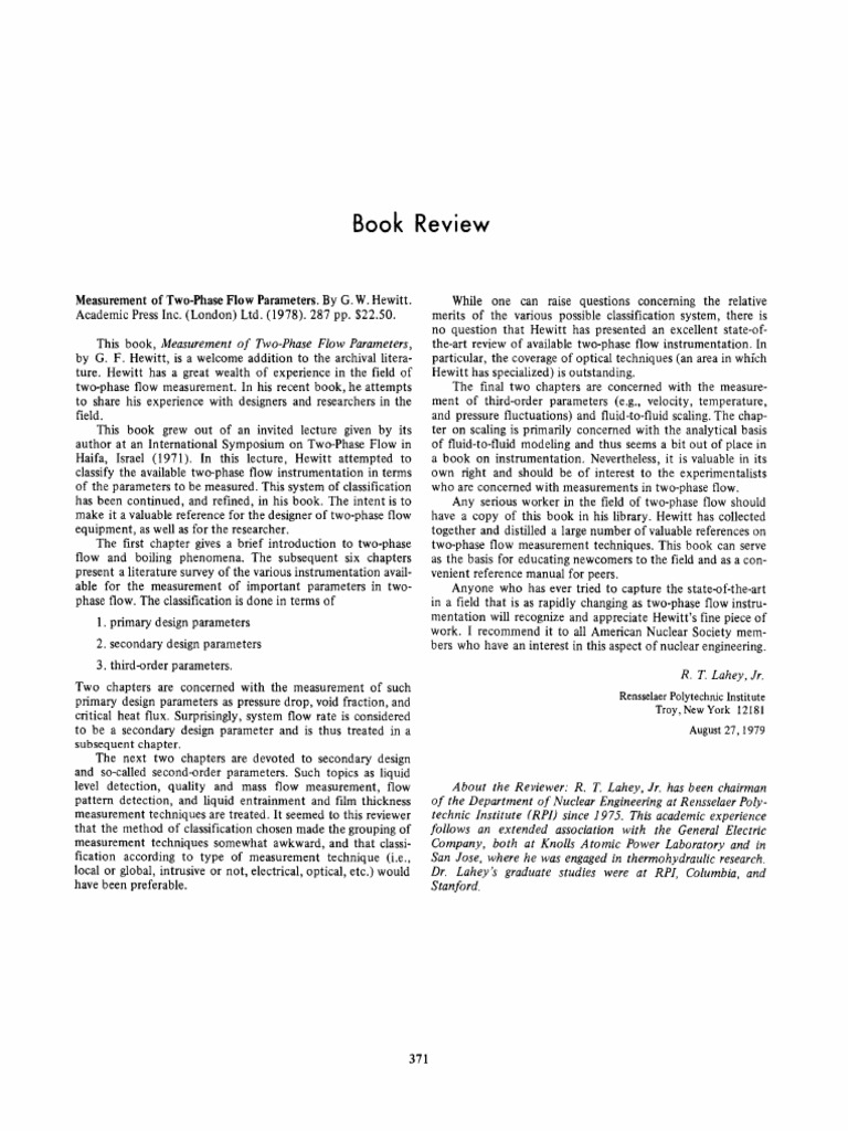 About the Reviewer: R. T. Lahey, Jr. has been chairman
