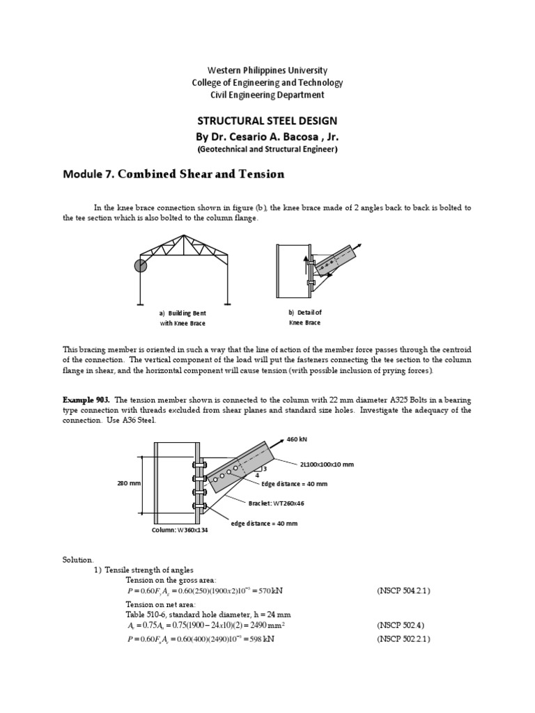 flange in shear, and the horizontal component will cause tension (with possible inclusion of prying forces).