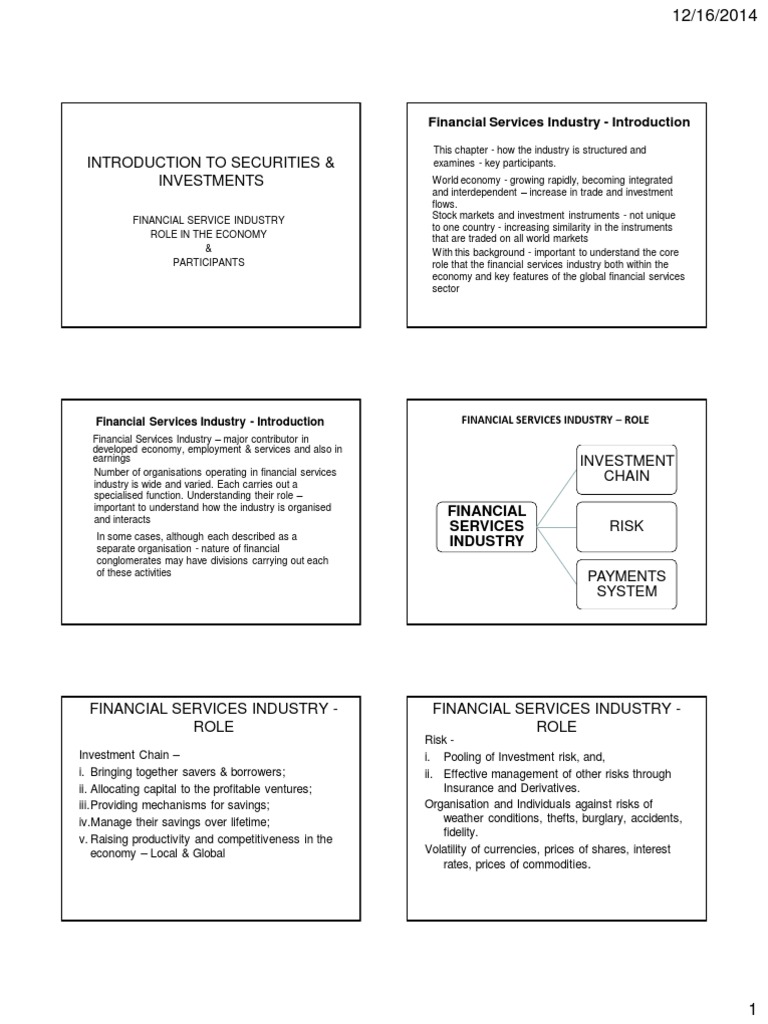Custodial business - a small number of global custodians often divisions of investment banks who also offer other