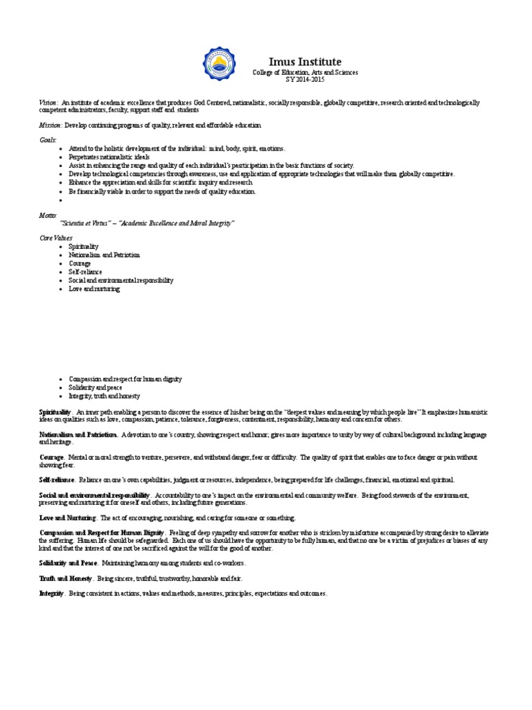 Scientia et Virtus Academic Excellence and Moral Integrity