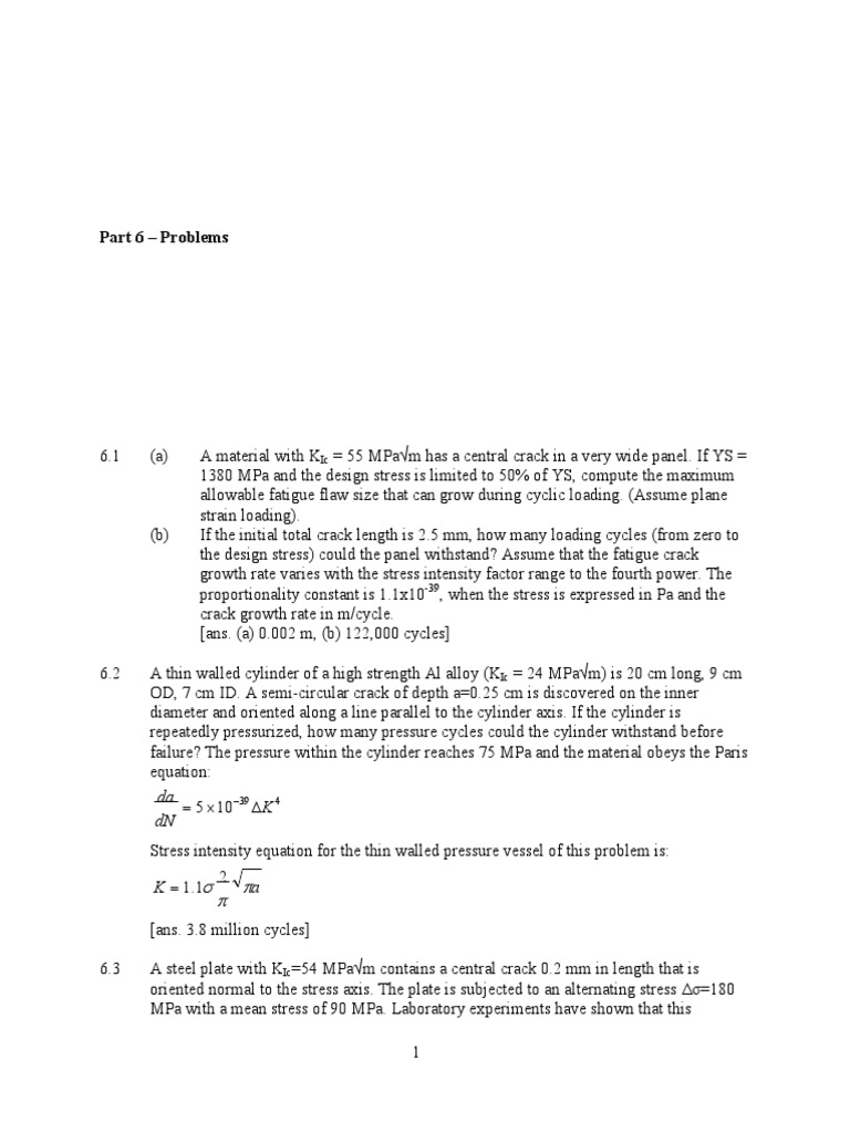 [ans. (a) 607 MPa, (b) 20 MPam, (c) 810-4 mm/cycle, (d) 9.310-5 mm/cycle, (e)