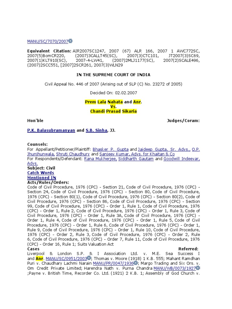 Premlata Nahata and Anr. (MANU/WB/0294/2005)