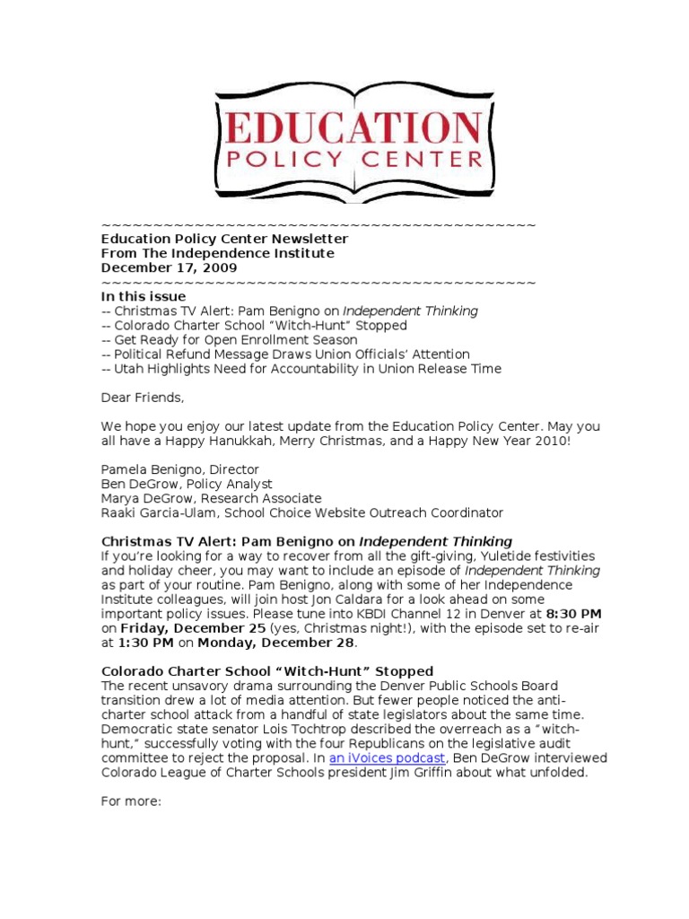 We hope you enjoy our latest update from the Education Policy Center. May you