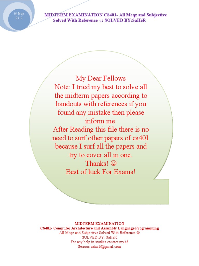 MIDTERM EXAMINATION CS401- All Mcqz and Subjective