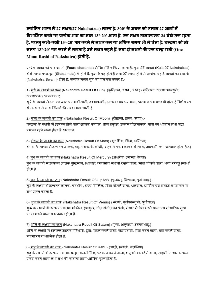 (Nakshatra Result Of Moon) (