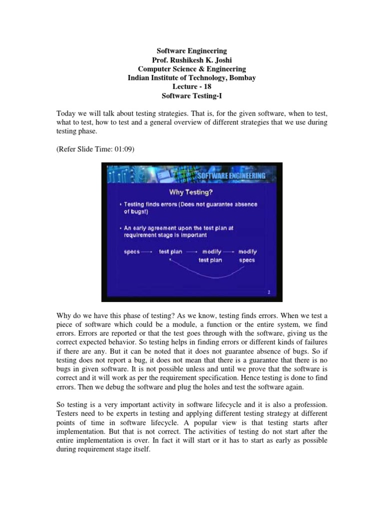Today we will talk about testing strategies. That is, for the given software, when to test,