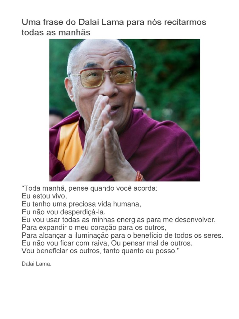 motivaes para incluir outros. Tente recitar esta aspirao simples todas as manhs por um ms e ver como ele muda sua atitude, s ua