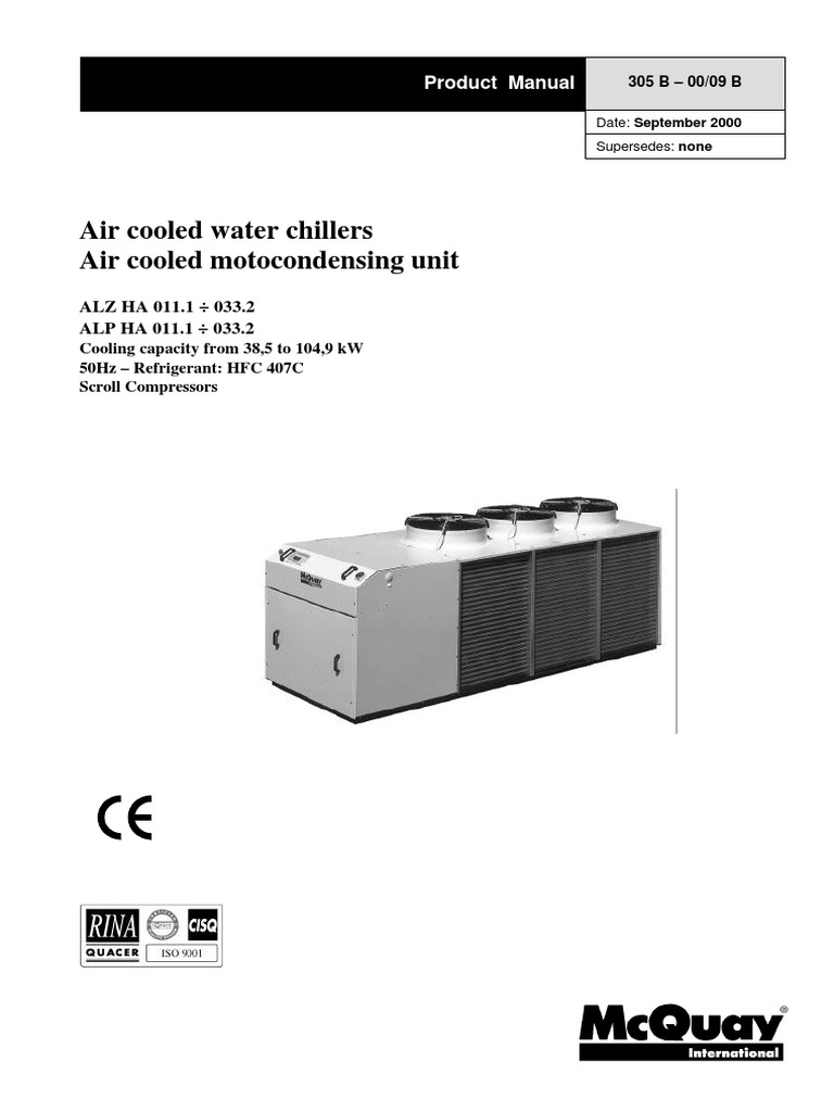 refrigerant HFC 407C. Studied and used by McQuay for several years, it offers the same garancies of