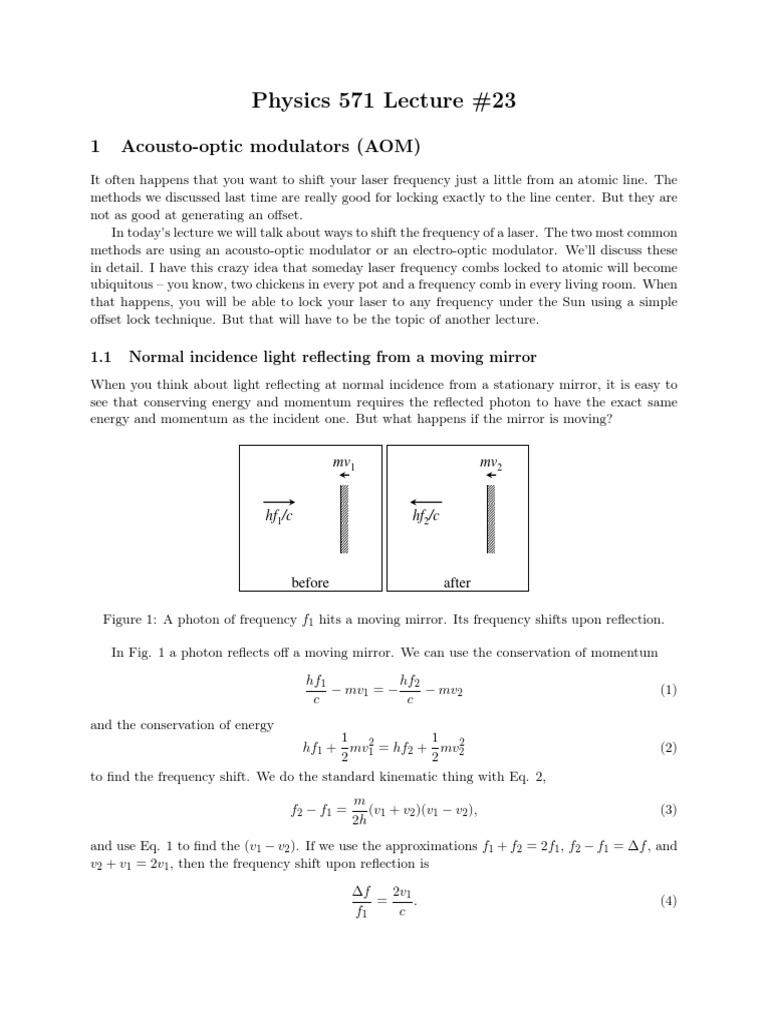 In todays lecture we will talk about ways to shift the frequency of a laser. The two most common