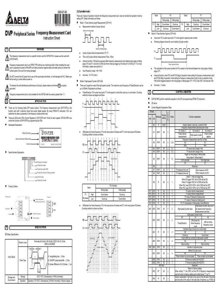 Thank you for choosing Delta DVP series product. The frequency measurement card (DVP-F2FR) is the
