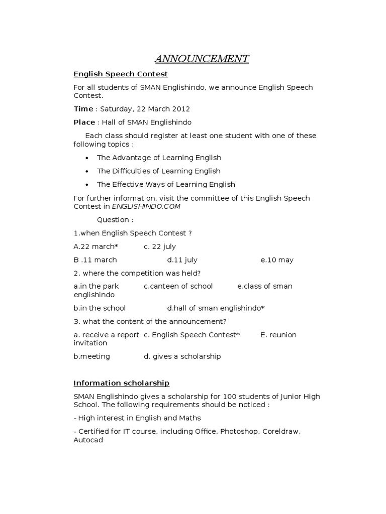 sumber : http://www.englishindo.com/2012/03/contoh-announcementtext.html#sthash.yTlmqRH9.dpuf