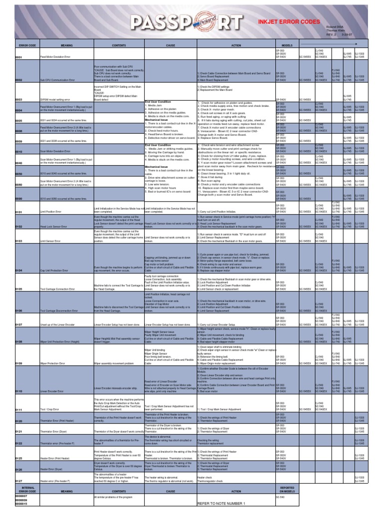 INKJET ERROR CODES