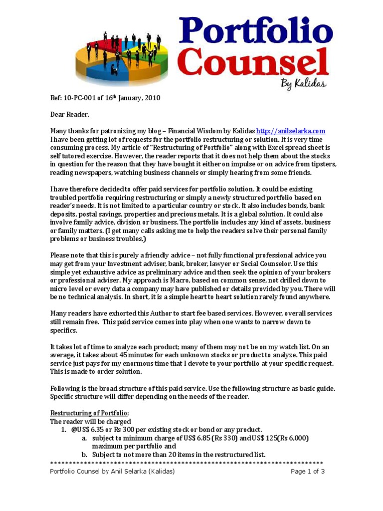 Portfolio Counsel by Anil Selarka (Kalidas) Page 1 of 3