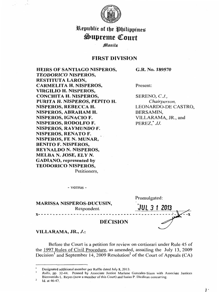 property, Maria took respondent Marissa Nisperos-Ducusin, a daughter of