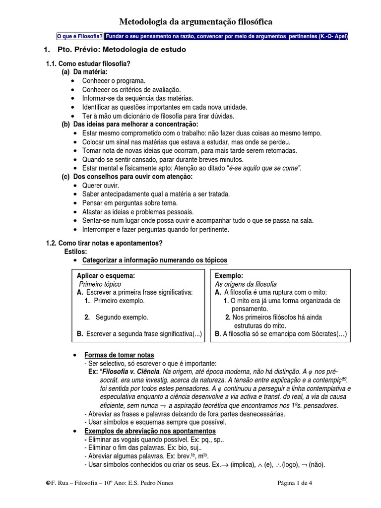 F. Rua – Filosofia – 10º Ano: E.S. Pedro Nunes