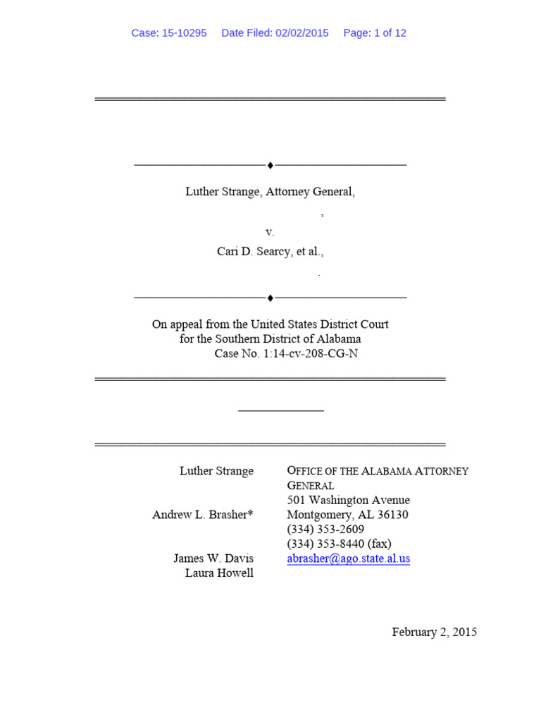 Strange, Luther, Attorney General s/ Andrew L. Brasher Andrew L. Brasher