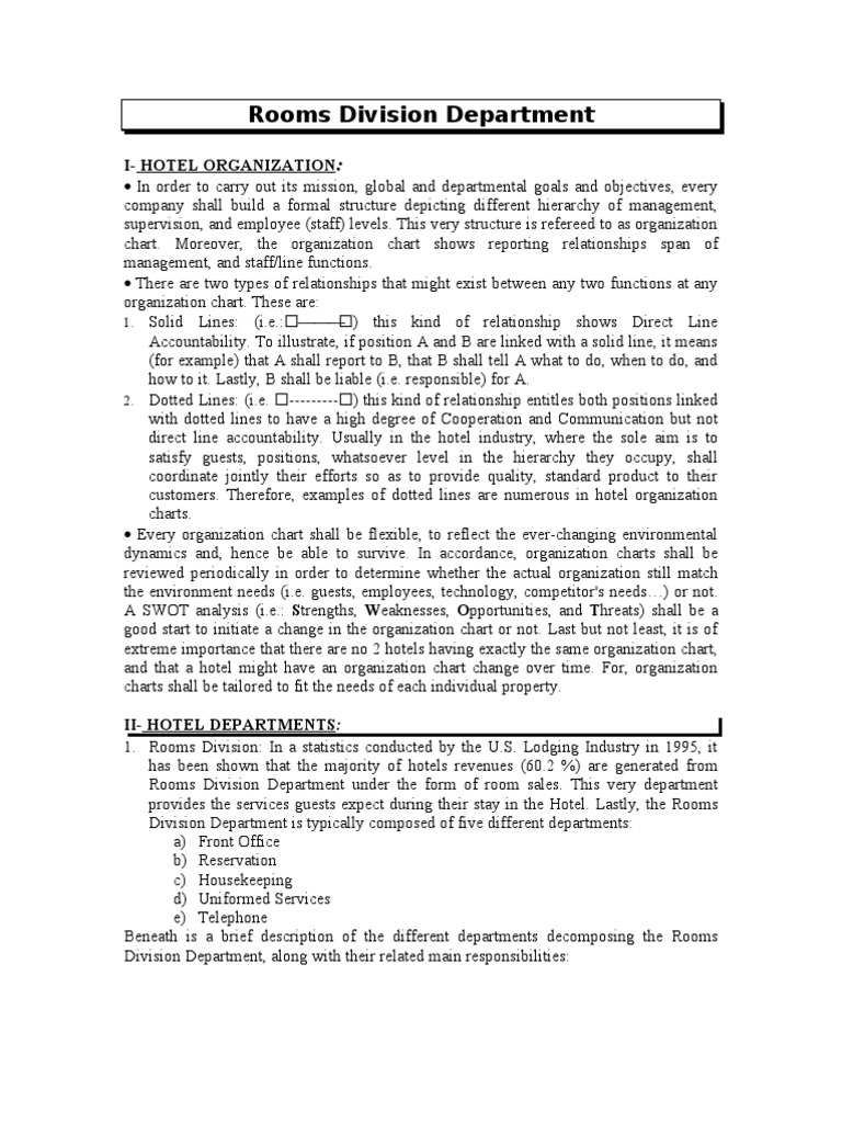customers. Therefore, examples of dotted lines are numerous in hotel organization