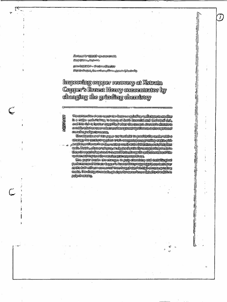 [', 2 t This paper provides a description of the work conducted at Xstrata Copper's Ernest