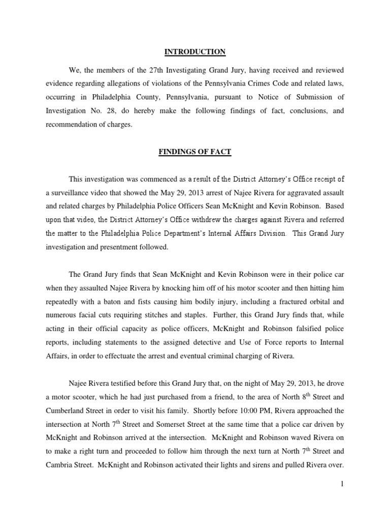 the matter to the Philadelphia Police Departments Internal Affairs Division. This Grand Jury