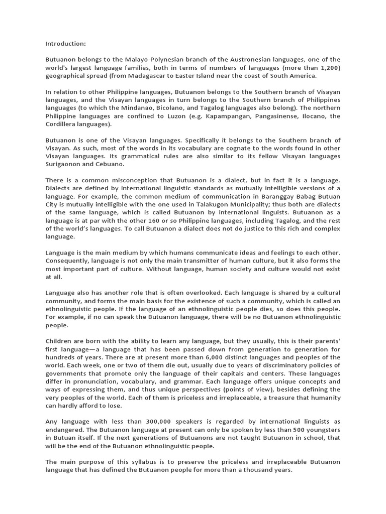 The main purpose of this syllabus is to preserve the priceless and irreplaceable Butuanon