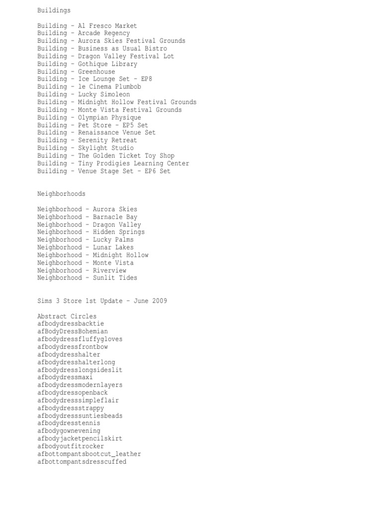 Sims 3 Store 1st Update - June 2009