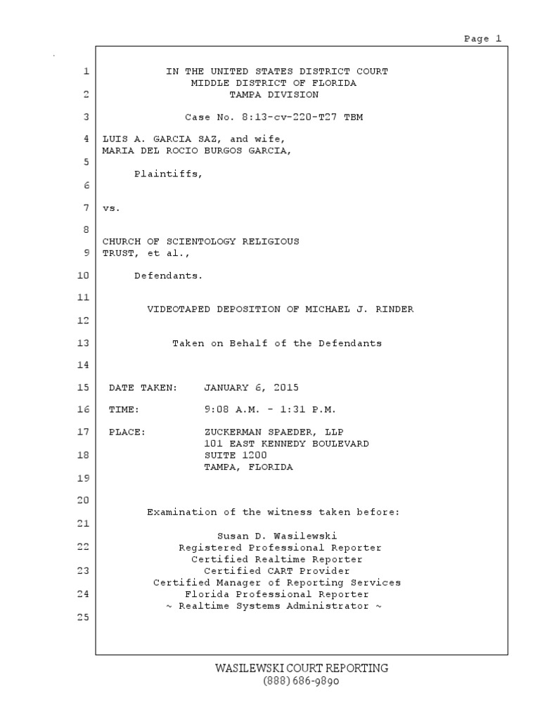 VIDEOTAPED DEPOSITION OF MICHAEL J. RINDER