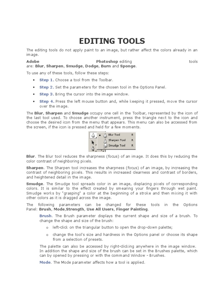 Blur. The Blur tool reduces the sharpness (focus) of an image. It does this by reducing the