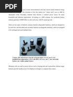 multitude of portable devices. Secondary (rechargeable batteries) can be discharged and recharged multiple