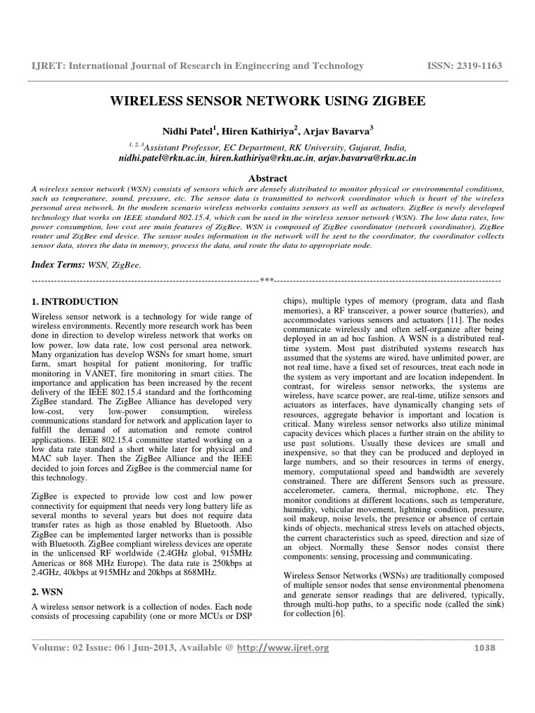 such as temperature, sound, pressure, etc. The sensor data is transmitted to network coordinator which is heart of the wireless