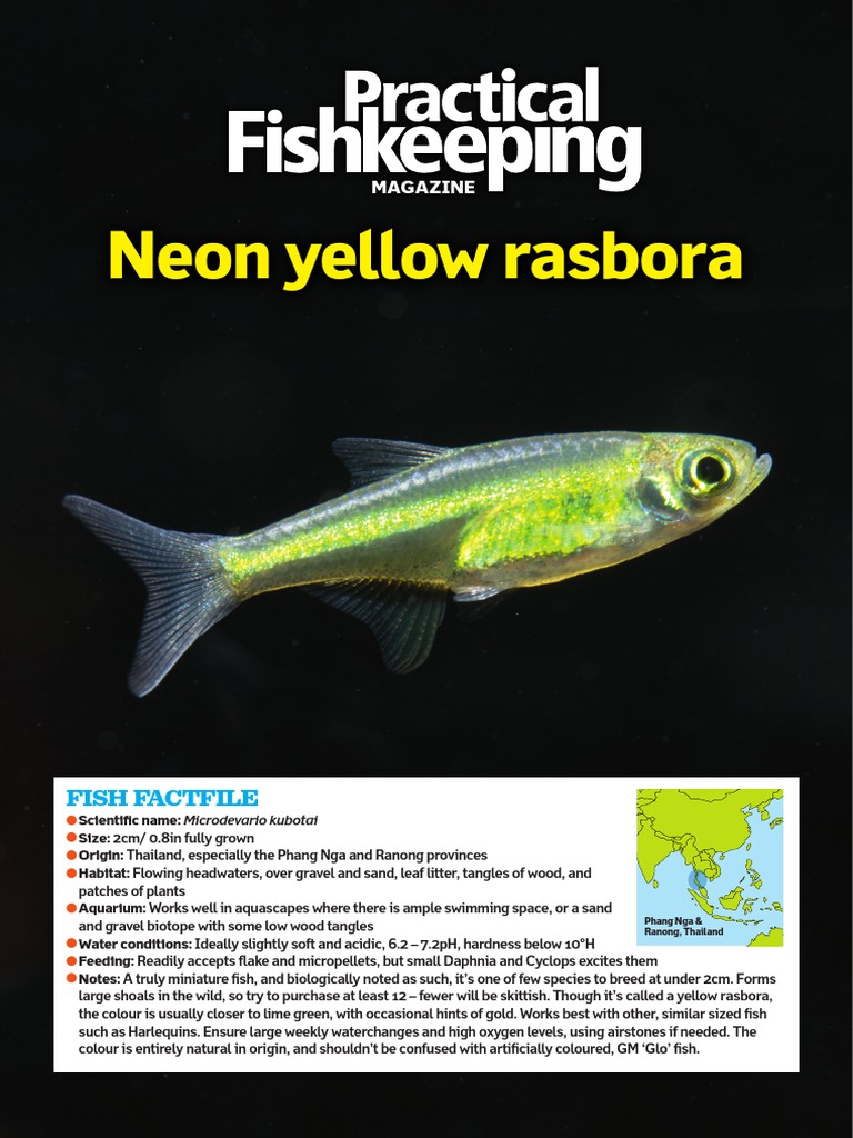 the colour is usually closer to lime green, with occasional hints of gold. Works best with other, similar sized fish