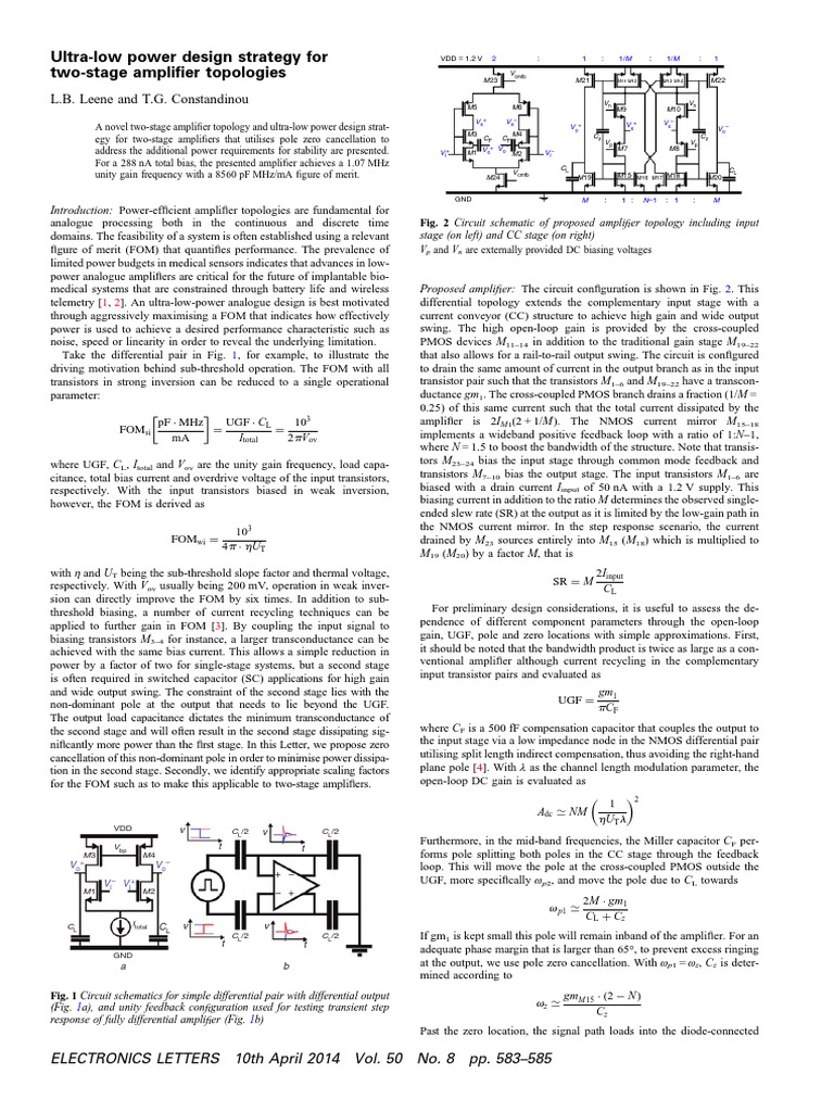 A novel two-stage amplier topology and ultra-low power design strategy for two-stage ampliers that utilises pole zero cancellation to