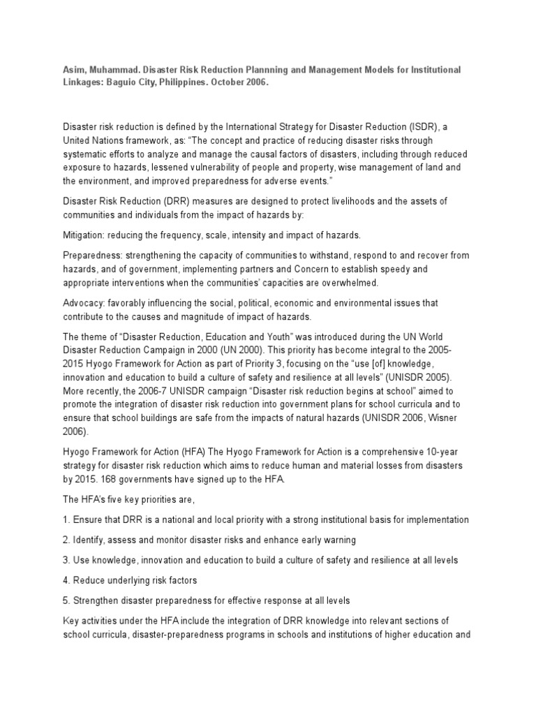 Disaster Reduction Campaign in 2000 (UN 2000). This priority has become integral to the 20052015 Hyogo Framework for Action as part of Priority 3, focusing on the use [of] knowledge,