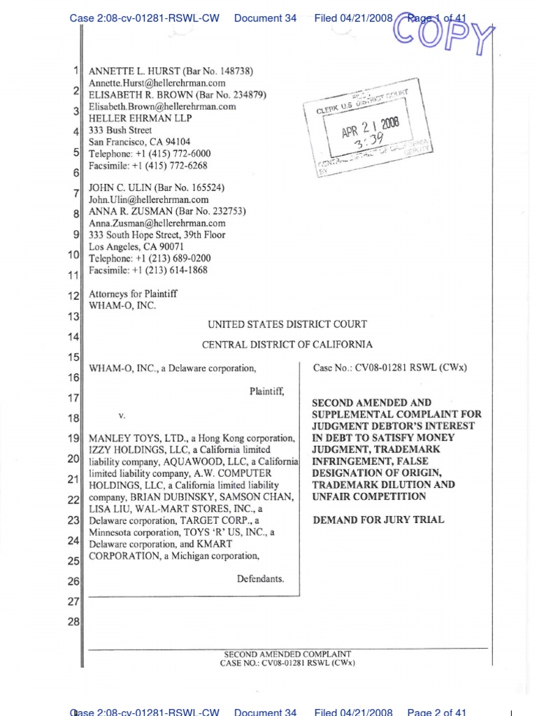 WhamO Complaint
