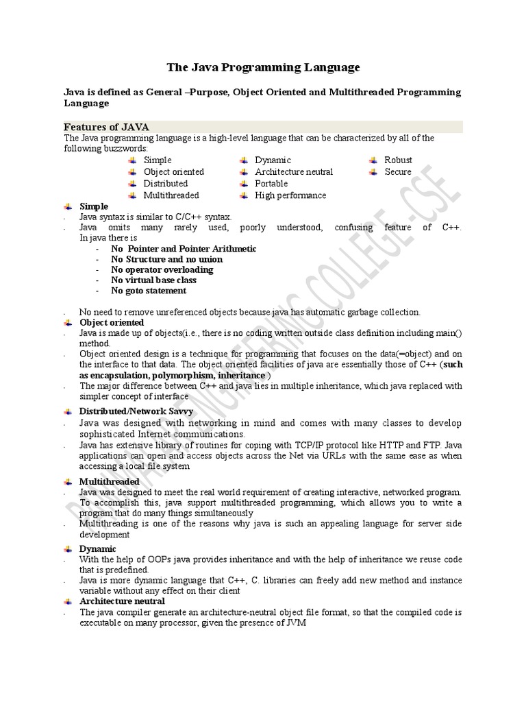 Features of JAVA
