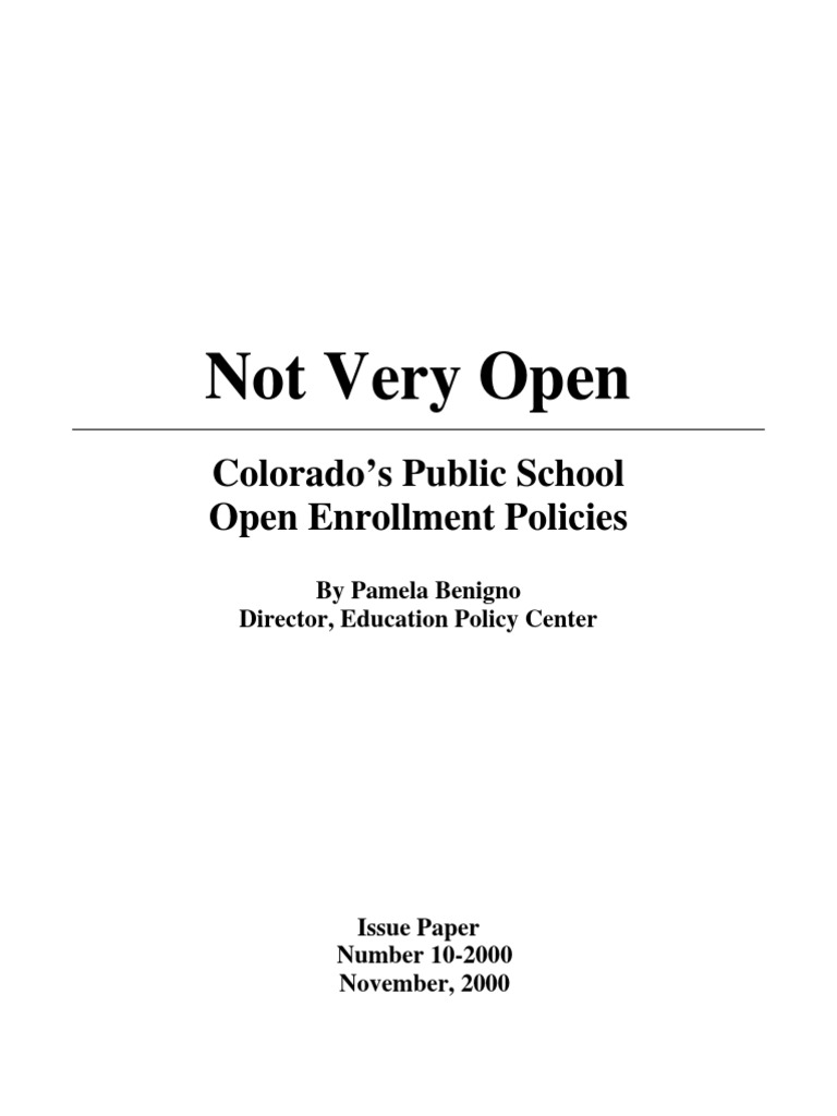 Colorado's Public School Open Enrollment Policies: Not Very Open