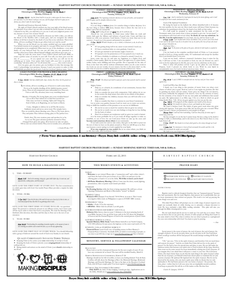 HARVEST BAPTIST CHURCH PRAYER DIARY SUNDAY MORNING SERVICE TIMES 8:00, 9:00 & 11:00A.M.
