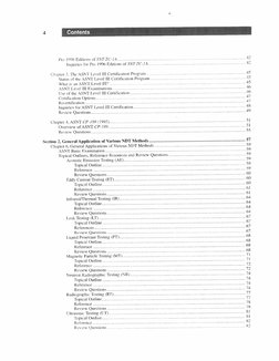Administration of a Personnel Qualification and Certification Program: Discusses standards and practices for personnel qualification and certification under ASNT guidelines. The ASNT Level III Certification Program: Provides details on Level III certification requirements, examination process, and scope. ASNT CP-189 (1995): Covers specifics of CP-189, its comparison with other standards, and its role in certification. General Application of Various NDT Methods: Overview and detailed examination of various NDT methods and applications. ASNT