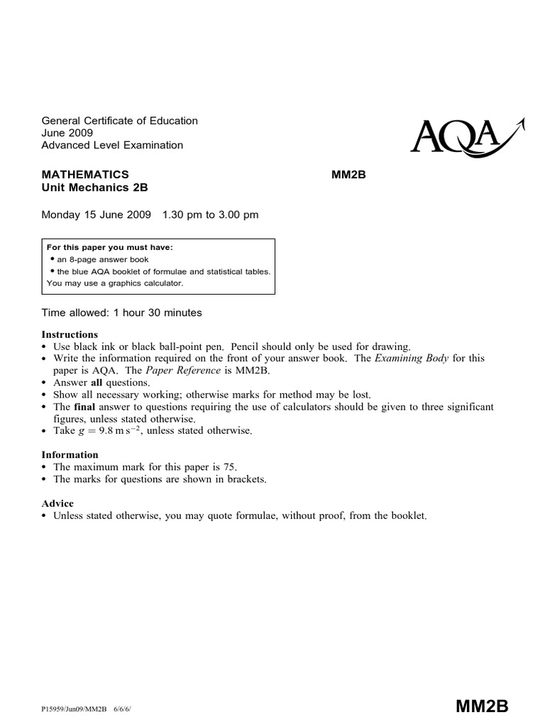 paper is AQA. The Paper Reference is MM2B.