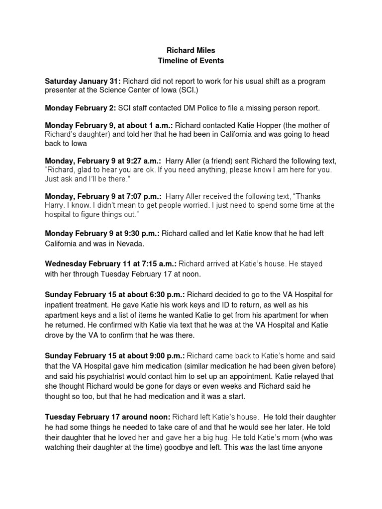 Monday February 9, at about 1 a.m.: Richard contacted Katie Hopper (the mother of