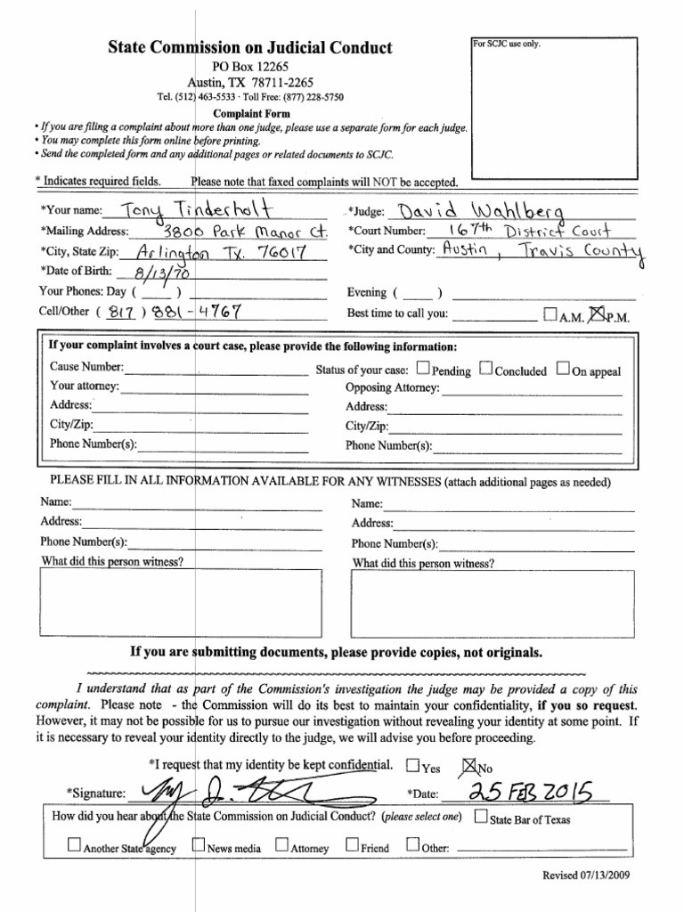 How did you “en State Commission on Judicial Conduct? (please select one) [state Bar of Texas