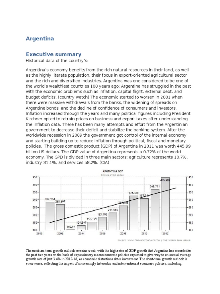 policies. The gross domestic product (GDP) of Argentina in 2011 was worth 445.99
