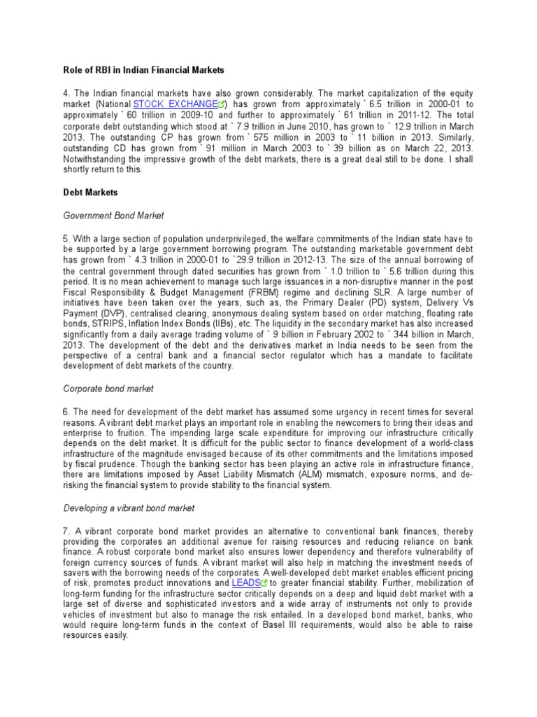 Role of RBI in Indian Financial Markets