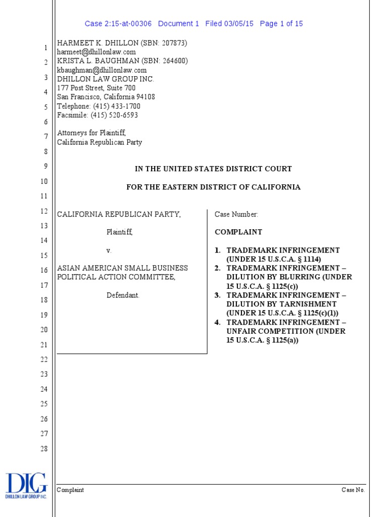Lawsuit filed in federal court accusing a political action committee often aligned with Democrats of using the GOP elephant logo for a mailer aimed at Republicans in a heated state Senate ra…