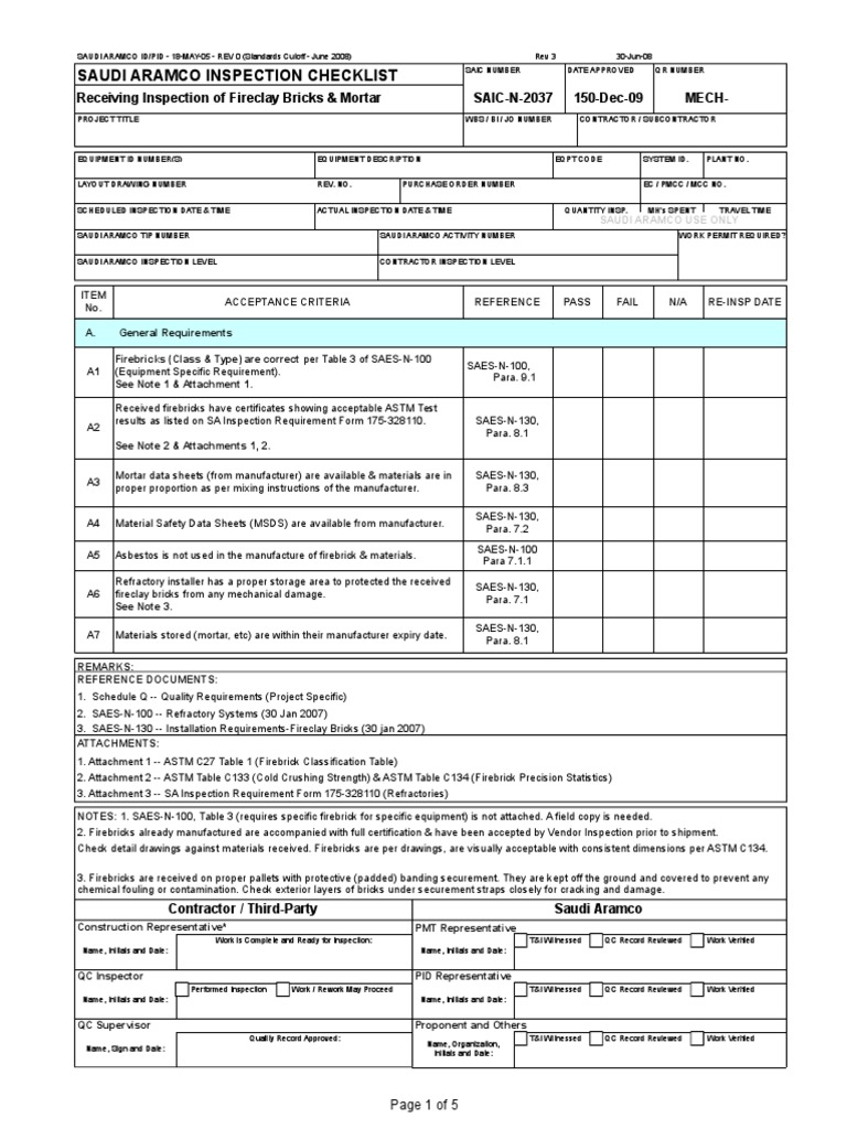 3. SAES-N-130 -- Installation Requirements-Fireclay Bricks (30 jan 2007)